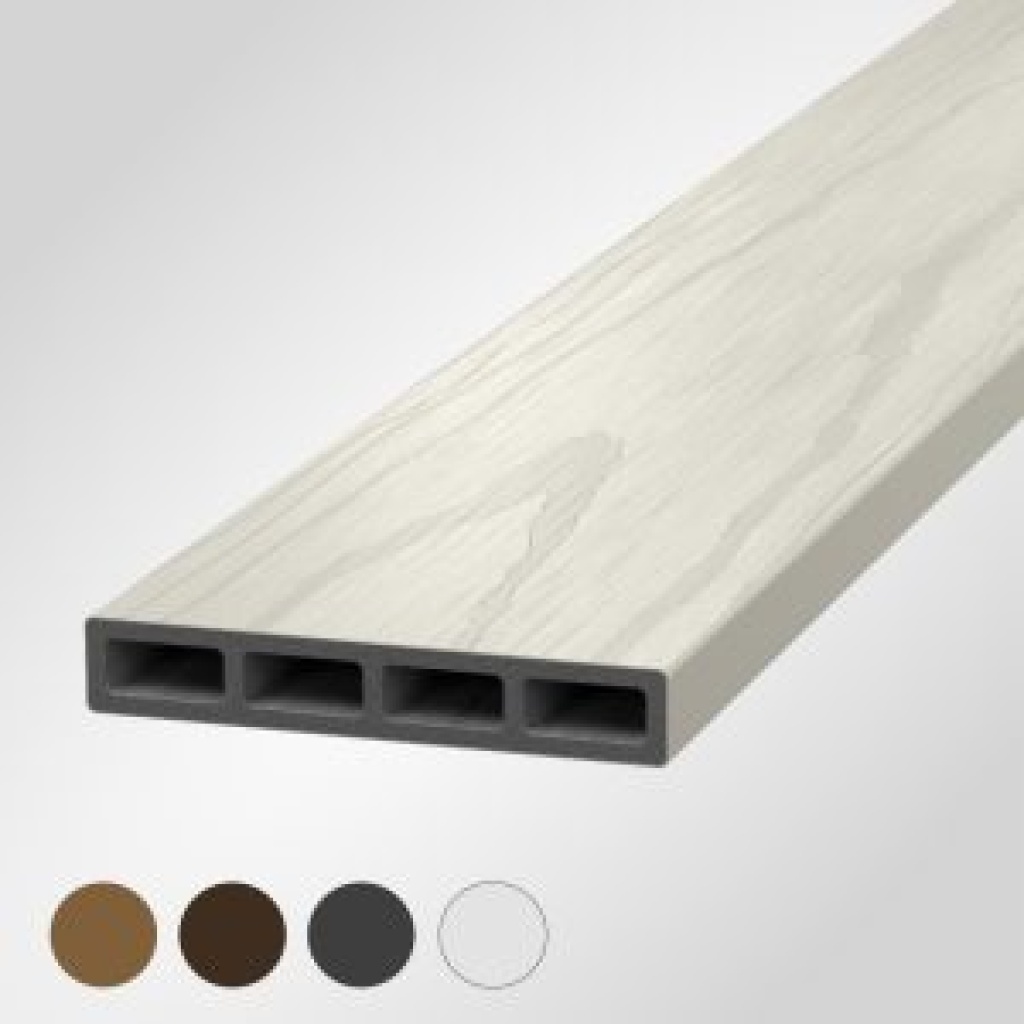 ELEGANT is a new-generation hollow profile. The protective layer prevents dirt from penetrating the pores of the board. This ensures especially easy maintenance and a long service life. Dimensions: 120 × 20 mm