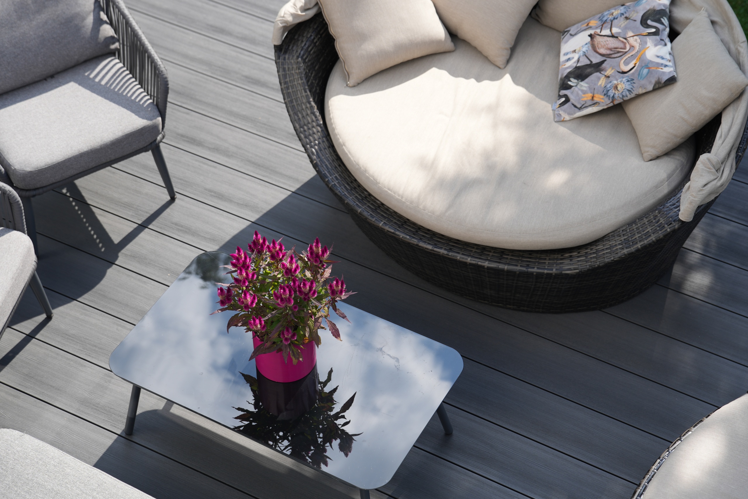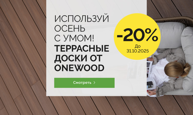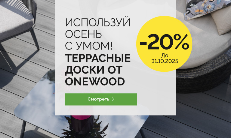 Продукты атмосферостойкие, не требуют никакого смазывания или окрашивания, не оставляют заноз и не скользкие даже в сырую погоду. Продукты OneWood меняют мировоззрение о техническом обслуживании и безопасном использовании террас, заборов, уличной мебели и фасадного настила.